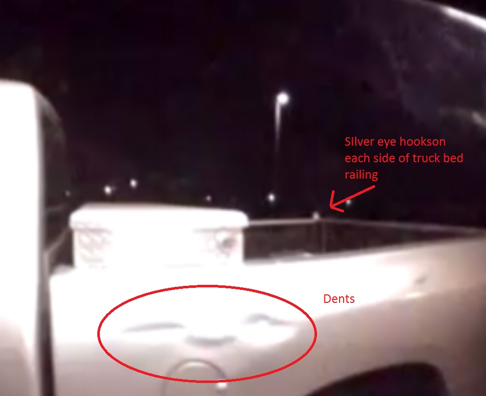 Surveillance footage captures one female at two locations and two different males who used the credit cards. There suspects are seen in two different vehicles – one light colored Dodge four-door truck, 2006 – 2008 with dents near the gas cap area and eye hooks on the back of the truck bed rim. The other vehicle is a gold colored four-door sedan.