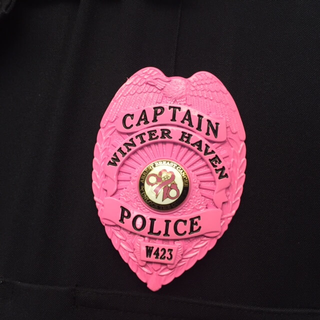 Winter Haven, Florida – Members of the Winter Haven Police Department have voluntarily purchased pink badges in support of Breast Cancer Awareness Month thru the month of October.