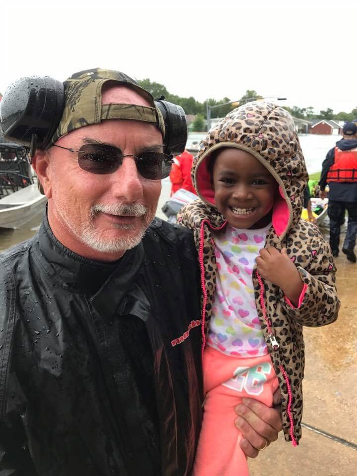 Jim and crew headed out first thing the next morning and started their rescue efforts. It did not take long for them to fill their boats with people who needed help. The people they rescued were very thankful and welcomed him and his crew with opened arms. Jim and his crew continue to run rescue missions based on a daily Intel briefing they receive from local coast guard and rescue organizers. Although rain has stopped flooding conditions will continue to be a challenge and potentially affect new areas.
